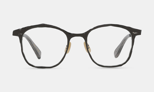Depict the flexibility of hard materials by twisting them. This collection has a uniquely human touch. The curved lines are carefully twisted by the hands of craftsmen one by one using a specialized tool made for this design. Gently twisted metals make frames look three-dimensional and you easily forget their heavy feelings.